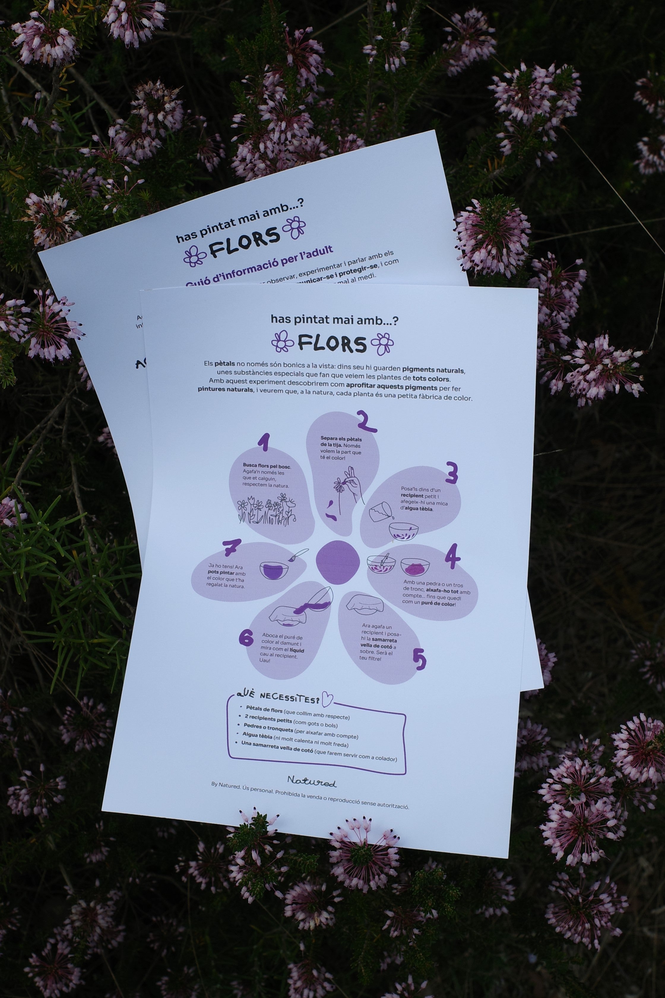 Inclou una guia pas a pas per extreure pigments naturals, activitats prèvies d'observació i experimentació i un guió informatiu per a l'adult amb curiositats sobre els colors de les plantes.