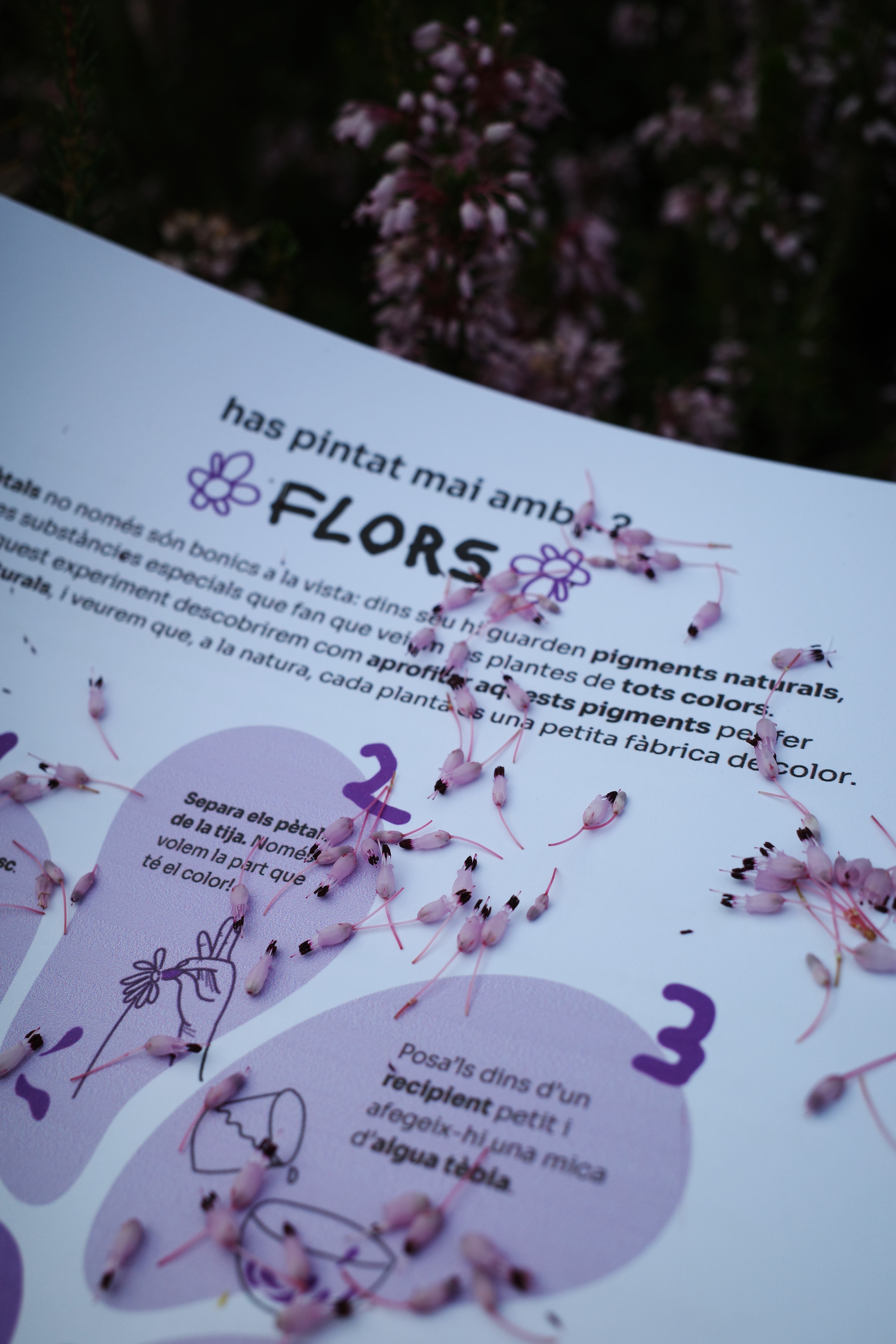 Pintar amb flors és una proposta pràctica i sensorial per aprendre com la natura utilitza el color per comunicar-se i protegir-se, i com podem aprofitar aquest coneixement de forma creativa.